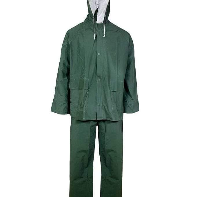 Top notch quality raincoat combined with a pair of rain pants to make a rainsuit.